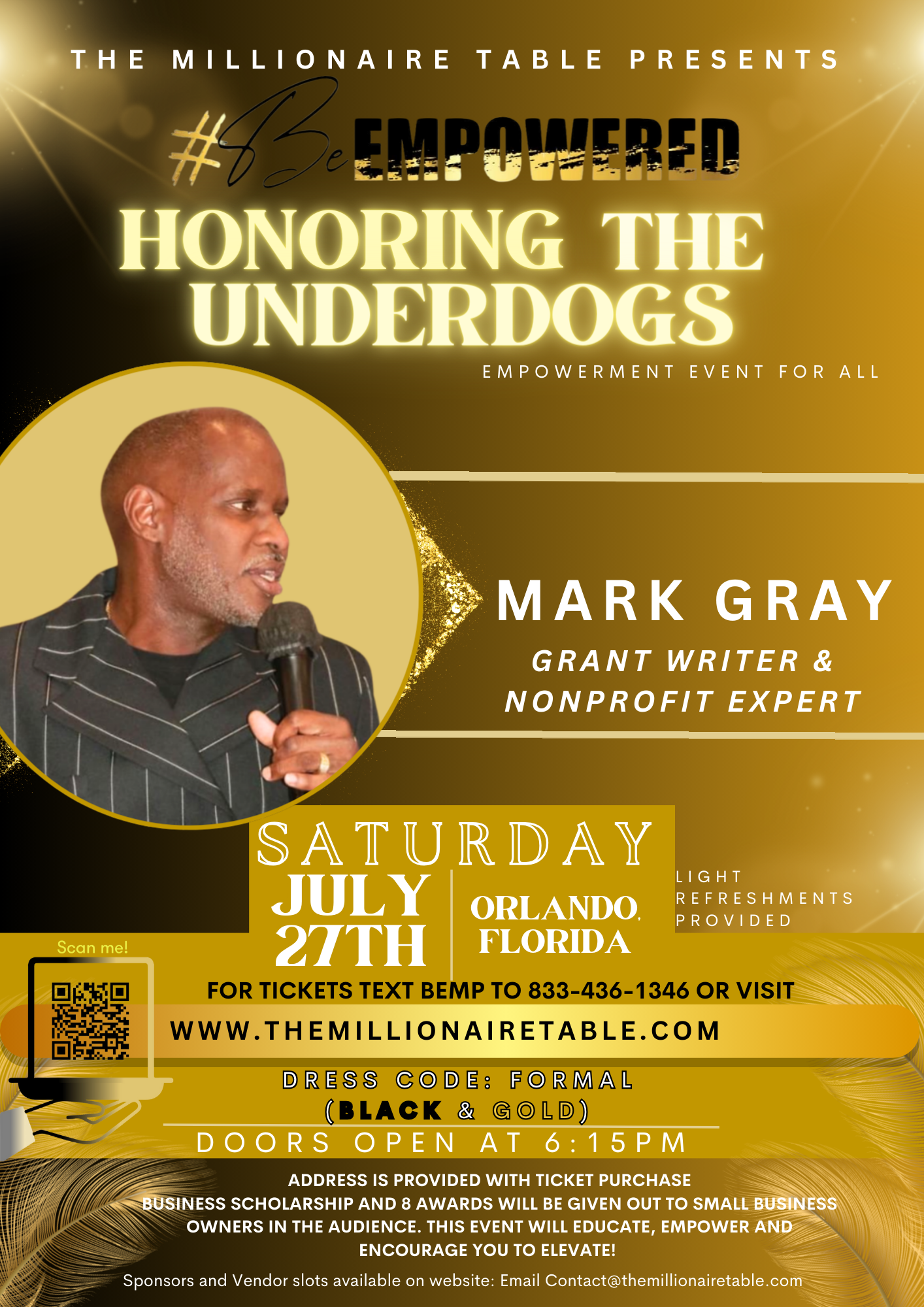 SPONSORSHIPS ARE DONATIONS: Monetary Donations, Snacks, Drinks, all accepted. Sponsors will be acknowledged. Email us for anything you would like to sponsor outside of our sponsor packages contact@TheMillionaireTable.com Subject: Sponsor for BeEmpowered